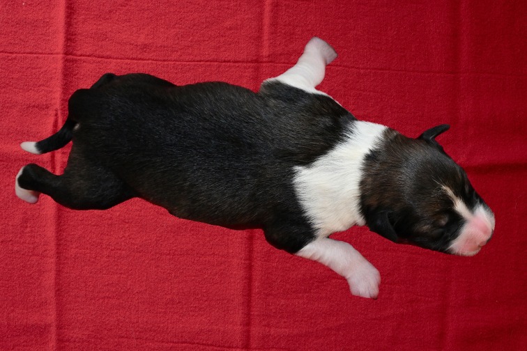 Nach längeren heftigen Wehen kommt um 18:40h der erste Welpe und ca. 23:50 der letzte der 6 Welpen gesund und munter zur Welt.