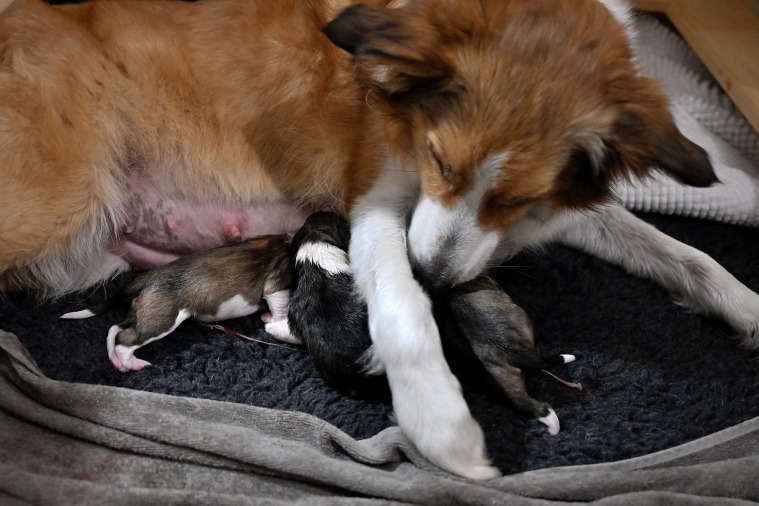 Caitlyn verlässt das Lager fast 24 Stunden nicht und umsorgt ihre Welpen voller Hingabe.
